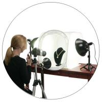 Всё проще : покупаем неск. метров белой тряпки. (100 руб) Сооружаем шатёр. Внутрь шатра ставим объект. Освещаем шатёр подручными осветителями. Лучше, если это будут импульсные моноблоки с пилот-лампами. Но можно освещать и простыми лампами накаливания. Только не след. изменять освещённость регулировкой напряжения питания. Придётся отодвигать-придвигать, для получения нужного светового рисунка....