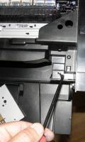 - откручивается два самореза, которые держат сзади правую ( если смотреть спереди ) боковую крышку и снимается правая боковина ( две защёлки снизу, со стороны дна МФУ ).